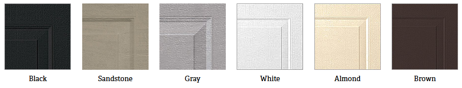 Your Classic Steel garage door can be finished in one of six signature colors—including Black†, Sandstone, Gray, White, Almond, and Brown. You can also upgrade the finish on Model 9605 by selecting from more than 6,000 TruChoice® custom colors.